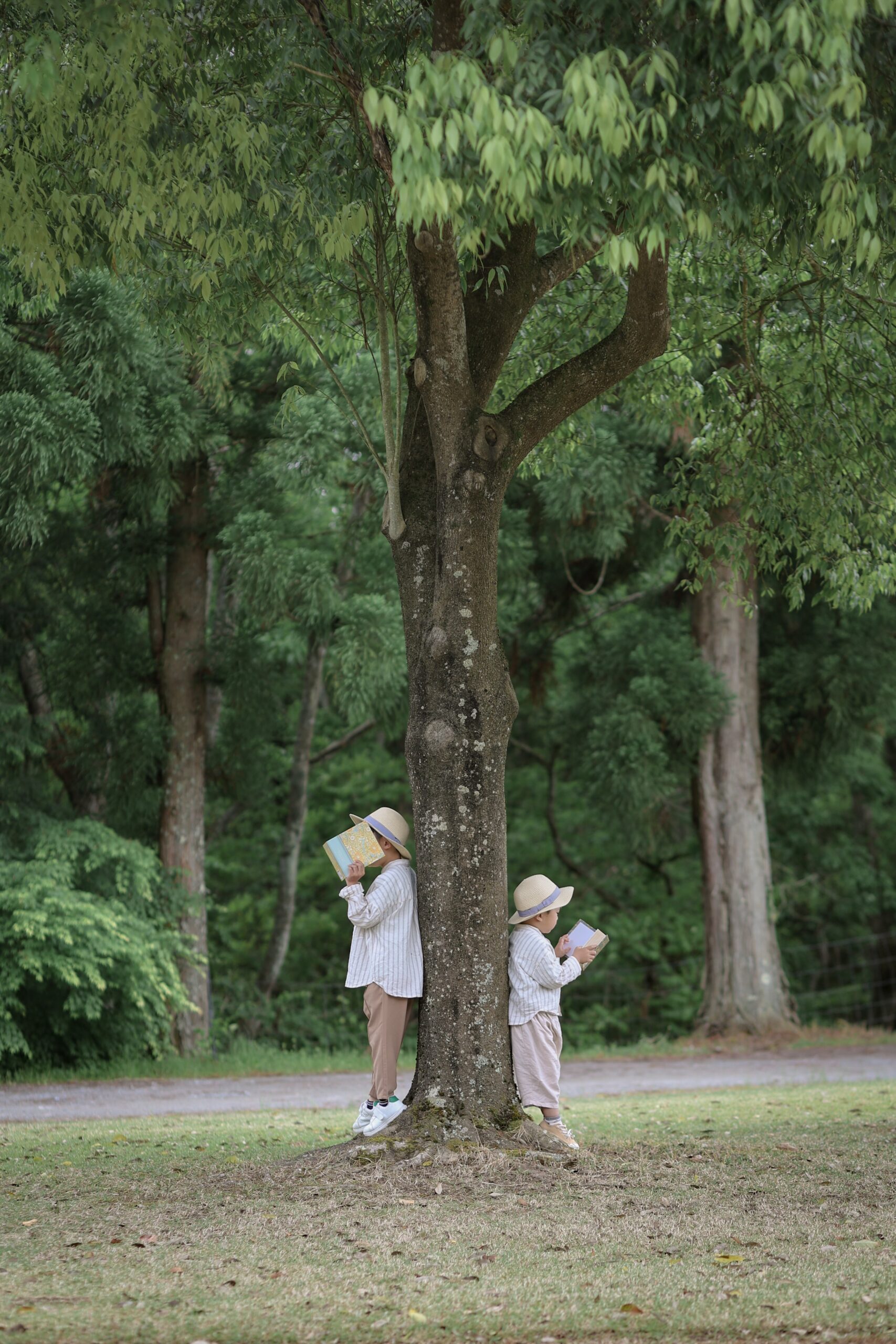そんな緑に包まれた空間の中で、それぞれの本を開いて過ごす兄弟の静かな時間を写しました。